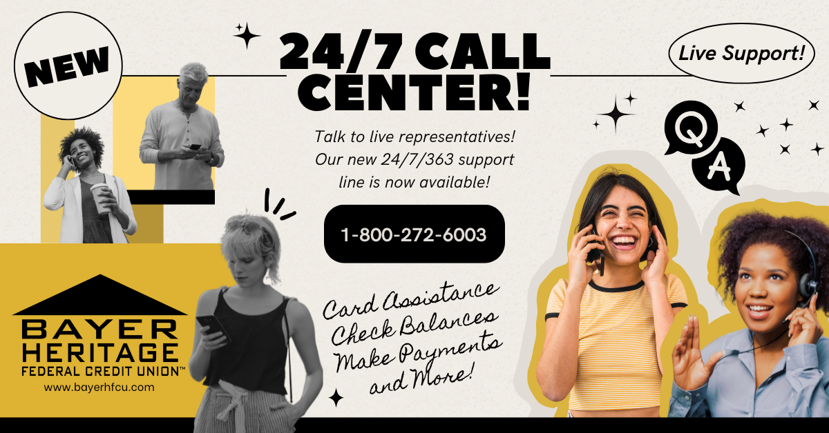 Exciting news for our members! You asked and we listened! We now offer live after hours support. Card assistance, check balances, make payments and more. Call 800-272-6003 for our 24/7 Call Center!